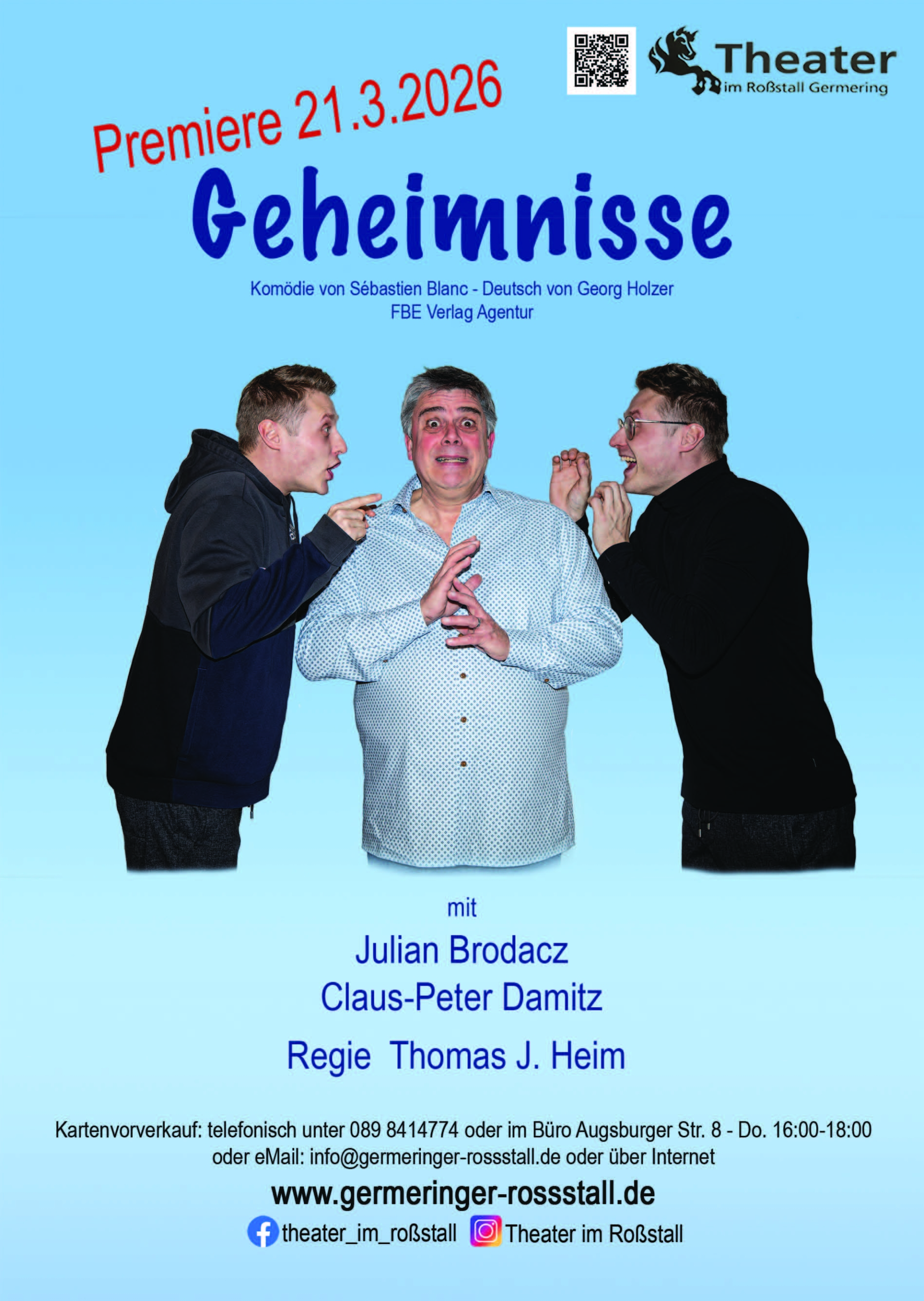 Am 7. Februar brutzelt unsere Extrawurst zum letzten Mal auf der Bühne – also nutzt die Gelegenheit für einen letzten, richtig vergnüglichen Abend im Roßstall. Und keine Sorge: Nach dem Finale wird’s nicht still, sondern spannend. Mit unserem neuen Stück „Geheimnisse“ öffnen wir schon bald die Tür zu einer Welt voller Überraschungen und unerwarteter Wendungen.